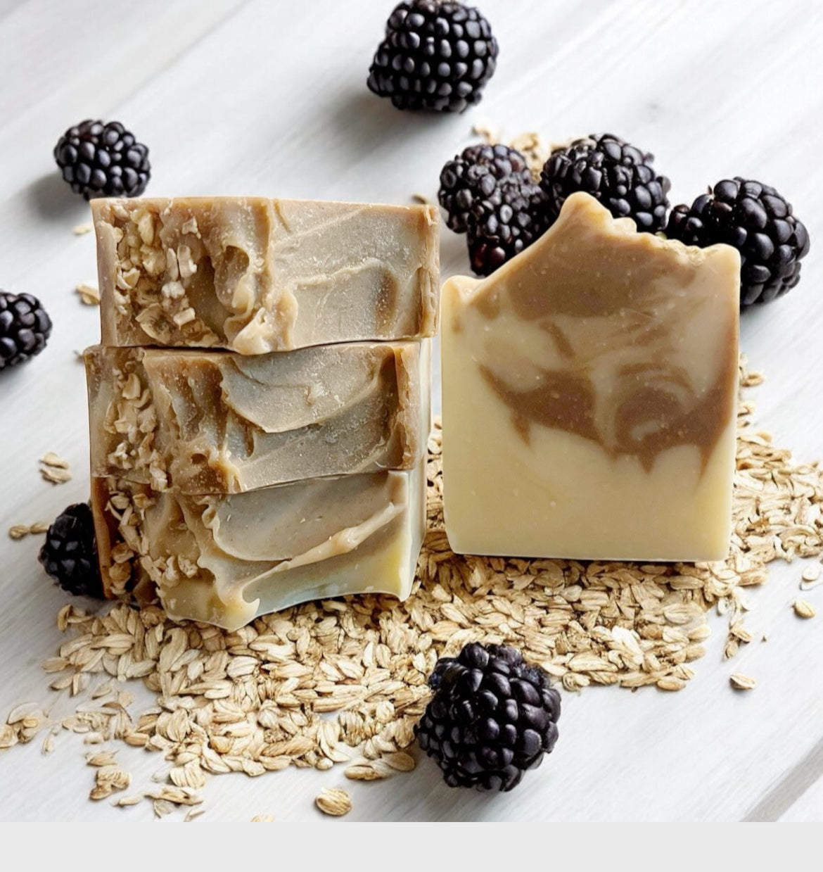 Our black raspberry & oats bar is a great soap for sensitive skin types but good for all types. It smells delicious, great lather! We use colloidal oat powder, oats, Brazilian purple clay, French pink clay each has great benefits for your skin.