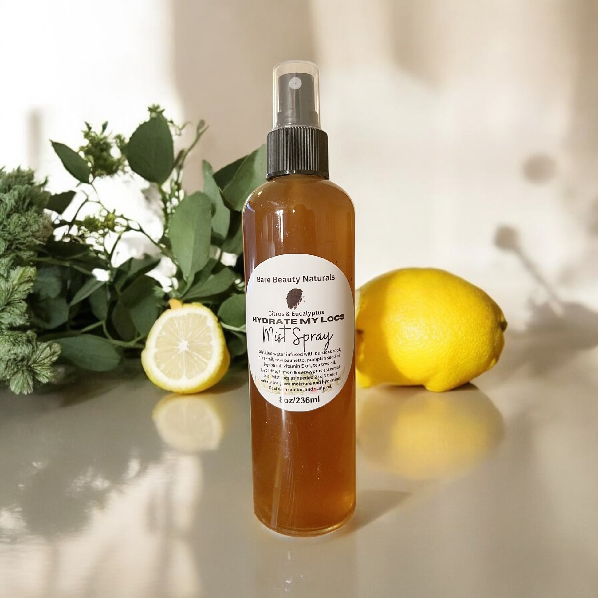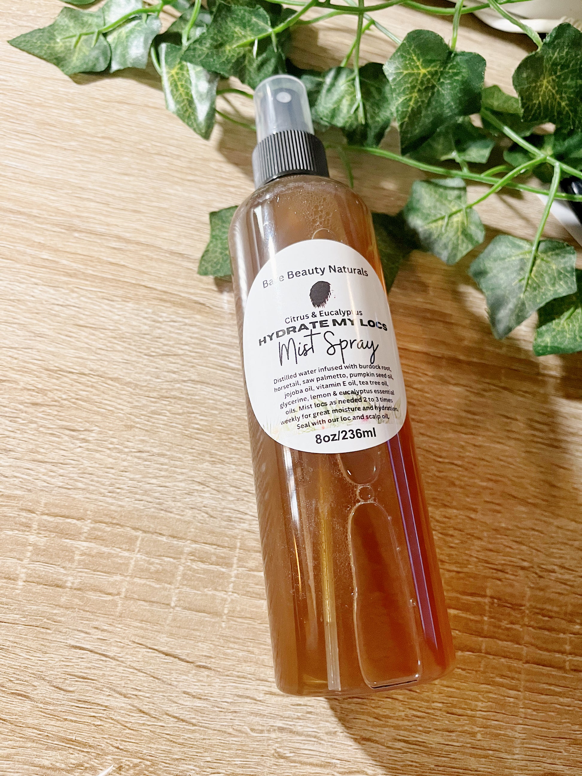 This hydration spray is great for locs and all hair types! Adds moisture & shine, helps with hair growth and strengthens your roots. Mist you locs 2 to 3 times a week or as needed it has a great herbal scented of citrus (lemon) & eucalyptus essential oil, to provide a refreshing feel. We use all natural herbs infused in distilled water such as burdock root, horsetail, saw palmetto along with pumpkin seed oil, jojoba oil, vitamin E oil, tea tree oil, glycerin. 8oz plastic bottle. Do not use if irritation occurs.
