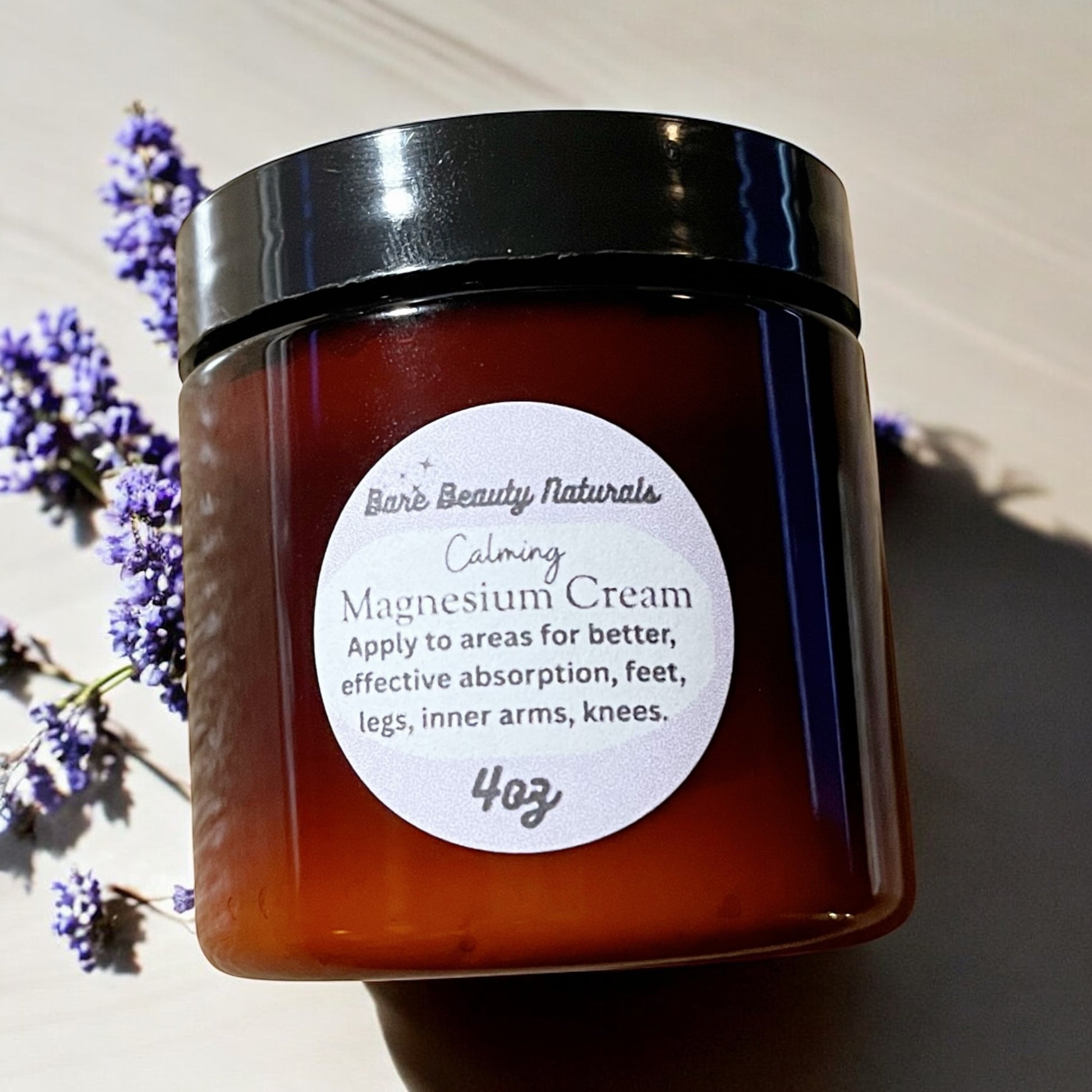 Our magnesium cream is great for calming, sleep, rest, joints and nerve issues. Best areas to apply the cream is inner arms, knees, legs and bottom of your feet also back. As NEEDED!! Research the benefits of magnesium chloride flakes before use. Magnesium is good for relaxation, sleep.